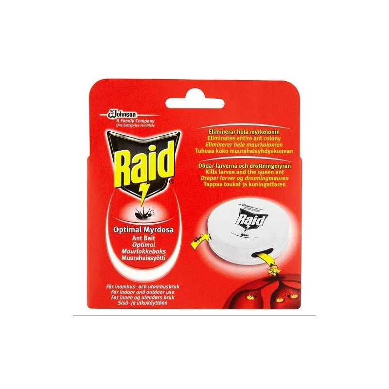 RAID Kontakt Hangyairtó csalétek ami hatásos védelmet biztosít a hangyák ellen a házban, az erkélyen vagy akár a terszán. A természetes rovarölő csalétket a dolgozó hangyák a bolyba szállítják, ahol a csalétek elpusztítja az egész hangyakolóniát. A csalétek néhány héten belül kifejti hatását az elterjedtség mértékétől függően. Nagyobb mennyisègben elterjedt hangyainvázió esetén és a maximális hatás érdekében használjon egyszerre több csalétket is vagy próbálja ki hangyaporainkat.