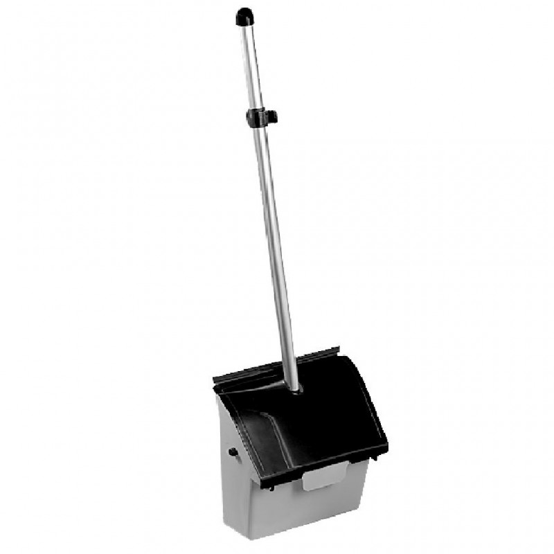 Praktikus szemeteslapát alumínium nyéllel és beépített fedéllel a higiénikus és pontos takarításhoz. A gumiperem szorosan illeszkedik a padlóhoz, így hatékonyan gyűjti össze a szennyeződést, míg a lengőfedél megakadályozza a kosz visszahullását vagy kiszóródását.
