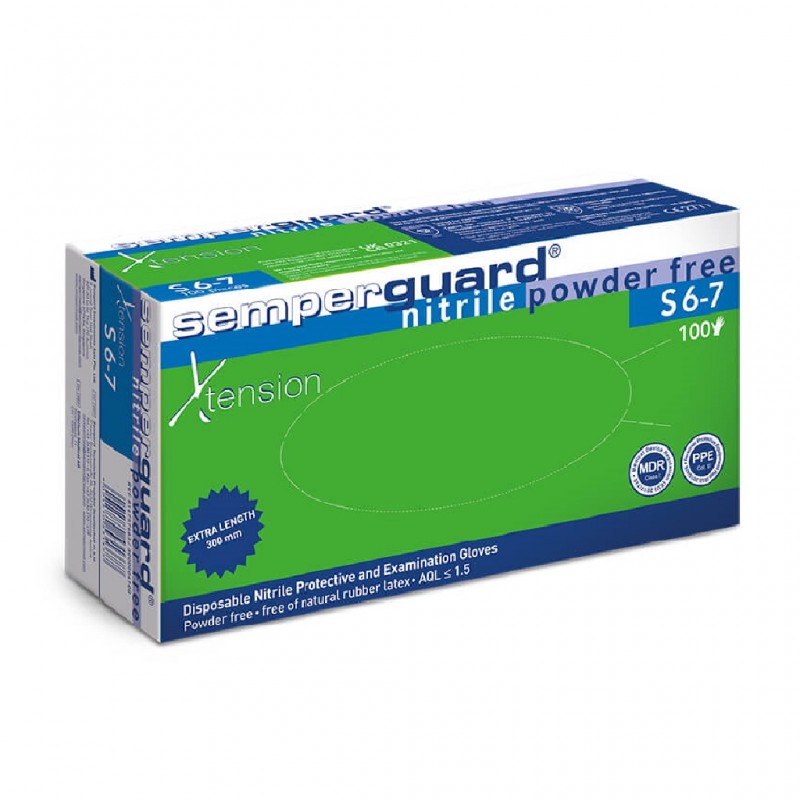 A semperguard® nitril Xtension kesztyű extra hosszú mandzsettája még nagyobb védelmet nyújt. Az ellenállóképessége vegyi anyagokkal szemben különösen hasznos laboratóriumi és gyógyszeripari alkalmazásokban. A kék színe pedig különösen kényelmes megoldást kínál az élelmiszeriparban, ahol a HACCP szabványok betartása rendkívül fontos.