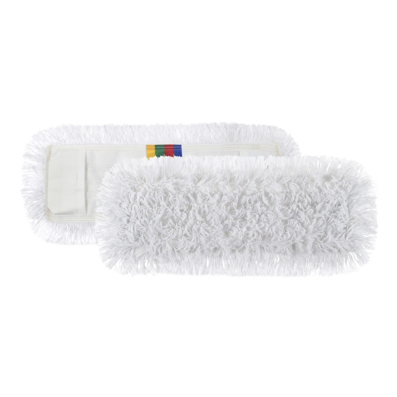 Hatékony 50x16 cm-es polyészter lapos mop kívül vágott, belül hurkolt kialakítással. Ideális könnyű takarítási feladatokhoz. Tartós anyagának köszönhetően hosszú élettartamú. Könnyen kezelhető és praktikus, tiszta és friss hatást nyújt a felületeken.